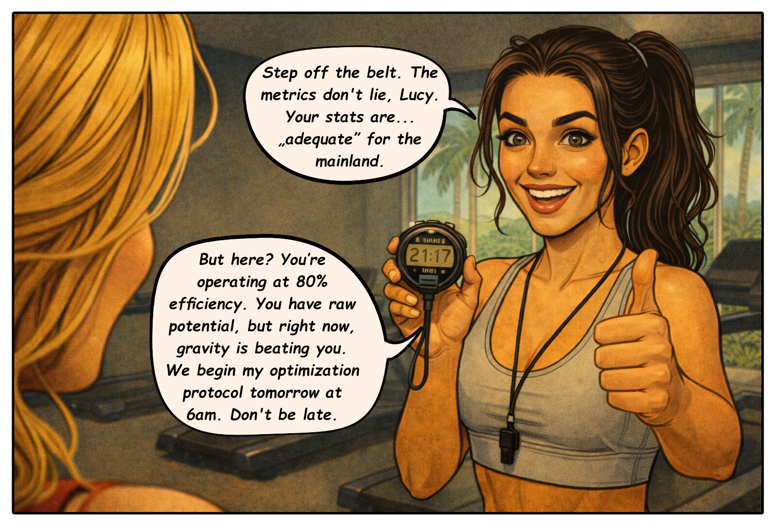 Welcome, Lucy. I’m Jillian. Don’t let the nice view distract you. In here, gravity is the enemy, and I'm your commander.