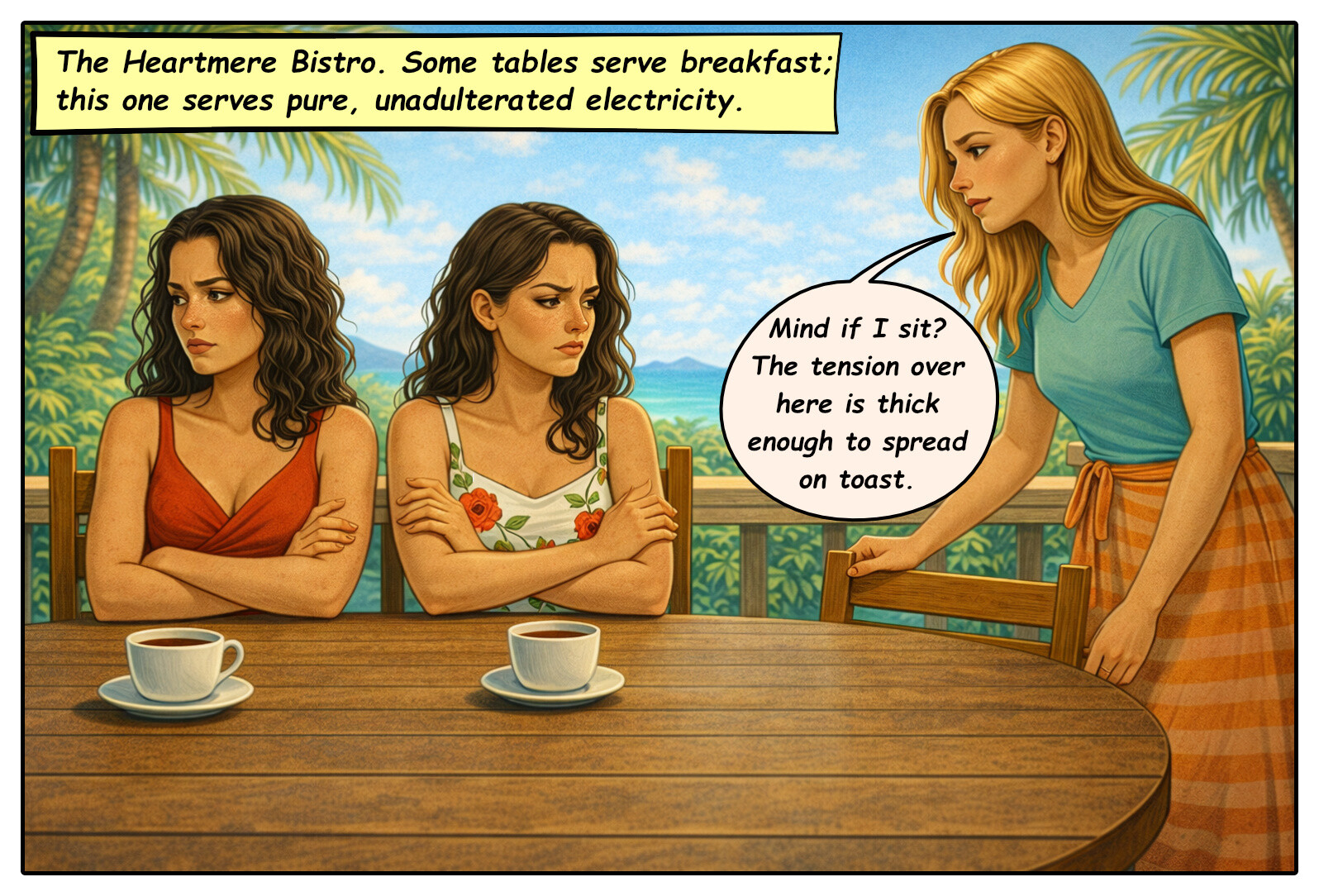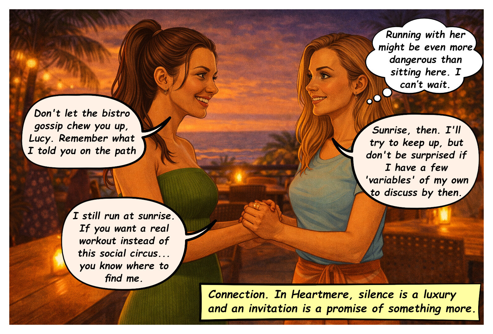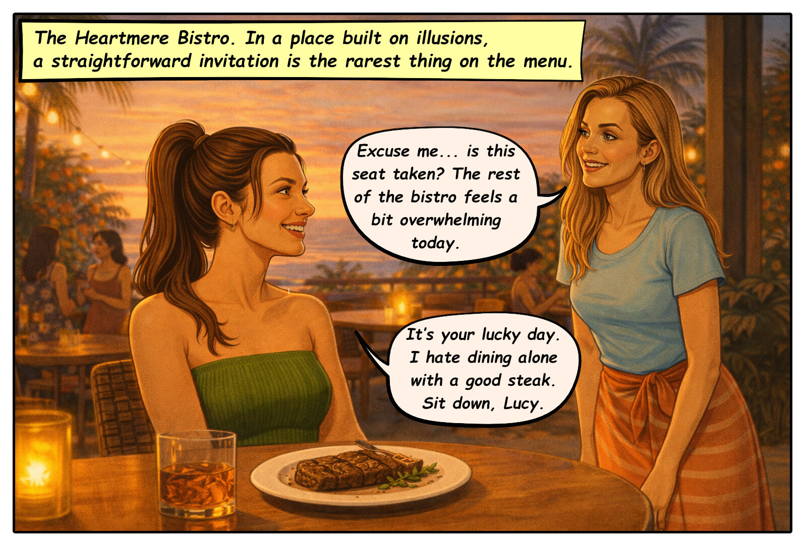 Heartmere’s social hub. Alliances form over coffee and truths are served with dessert. The staff sees all, but stays silent.